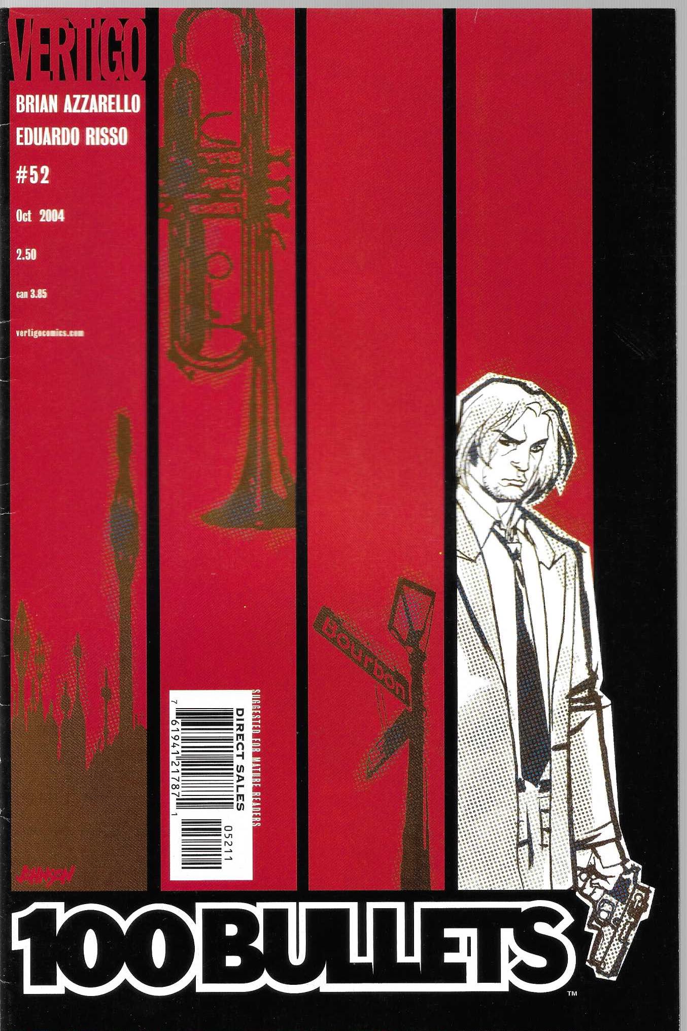 Wydawnictwo : Vertigo / DC Comics . Tytuł: 100 Bullets 52/2004 . Komiks w języku angielskim . Wydanie kolorowe . 32 strony . Stan Dobry : okładka lekko poprzecierana i poprzyginana . Małe załamania na grzbiecie komiksu .