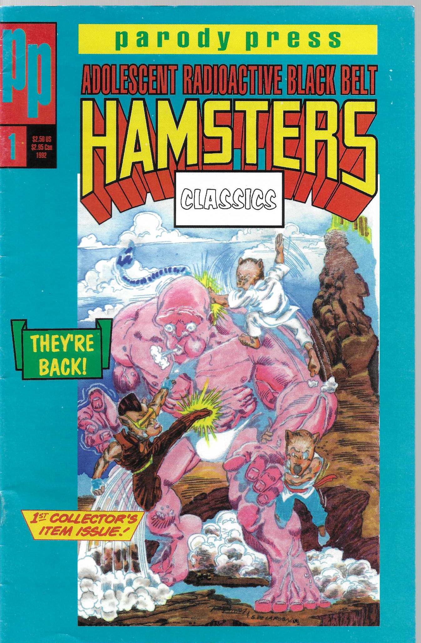 Wydawnictwo: Parody Press Comics . Tytuł: Adolescent Radioactive Black Belt Hamsters Classic 1/1992 . Komiks w języku angielskim . Wydanie czarno-białe . 32 strony . Stan Dobry : okładka lekko poprzecierana i poprzyginana.