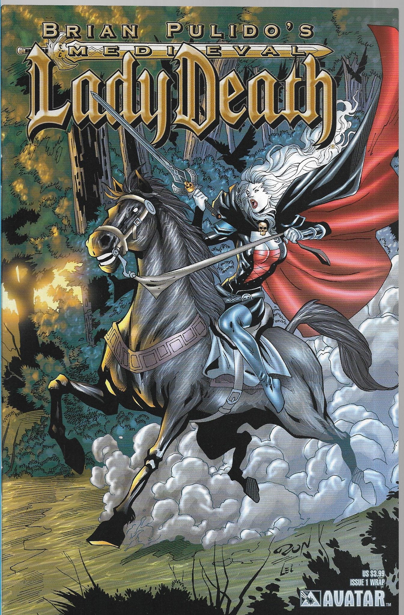 Wydawnictwo: Avatar . Tytuł : Brian Pullido's Mevieval Lady Death 1/2005 . Komiks w języku angielskim. 32 strony. Stan Dobry: okładka lekko poprzecierana i poprzypinana.
