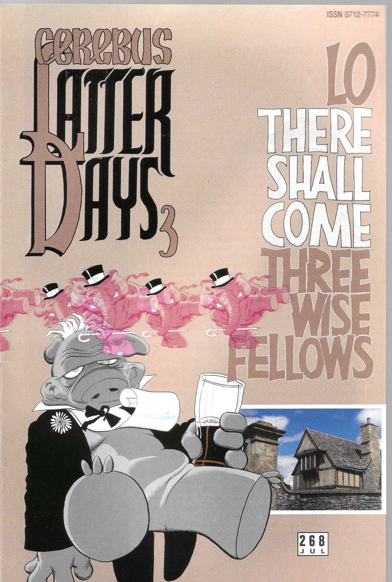 Opis Produktu : CEREBUS #268 by Dave Sim & Gerhard LATTER DAYS: Part 3 of 35 ? "Lo, There Shall Come Three Wise Fellows!" Okay, so Five Bar Gate turned out not to be Cerebus's destiny after all. Really at a loss, now, the little guy heads back down into Cirinist territory figuring that that will be the easiest way to commit suicide. However, he didn't reckon on Gorowitz, Horowitz, and Feinberg showing up. Includes five pages of "Aardvark Comment." The countdown to issue 300 (March, 2004) continues... t-minus 32 and counting! b&w, 24pg