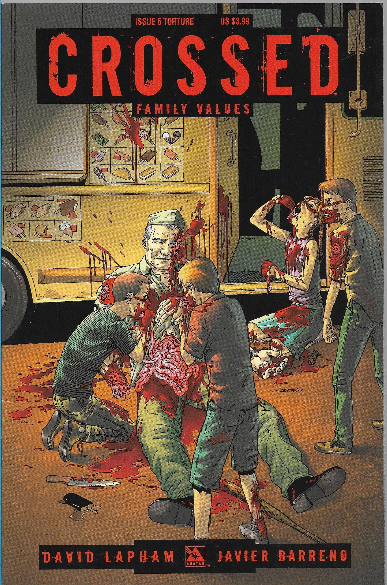 Wydawnictwo: Avatar . Tytuł : Crossed : Family Values 6/2010 . Komiks w języku angielskim. 32 strony. Stan Dobry : okladka lekko poprzecierana i minimalnie poprzyginana .