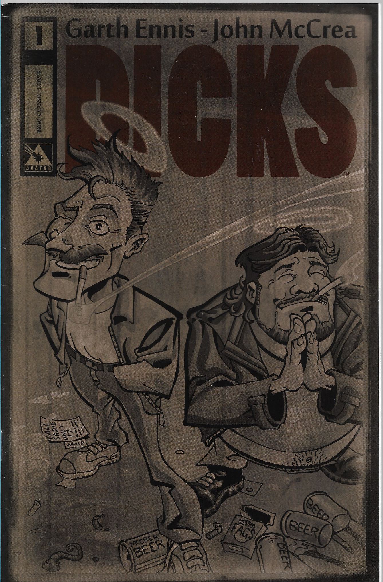Wydawnictwo: Avatar Comics . Tytuł: Dicks 1/2012 . Komiks w języku angielskim . Wydanie kolorowe . 48 stron . Stan Dobry : okładka lekko poprzecierana i poprzypinana. Parę rogów minimalnie przygiętych .