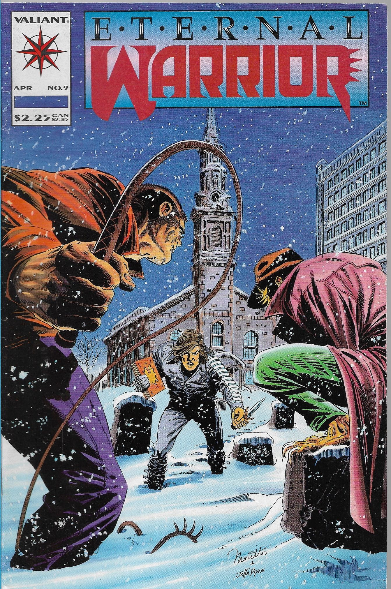 Wydawnictwo : Valiant . Tytul : Eternal Warrior 9/1993 . Komiks w jezyku angielskim . 32 strony . Stan Dobry : okladka lekko poprzecierana i poprzyginana . Male zalamania wzdluz grzbietu komiksu . Naklejka z cena na tylnej okladce .