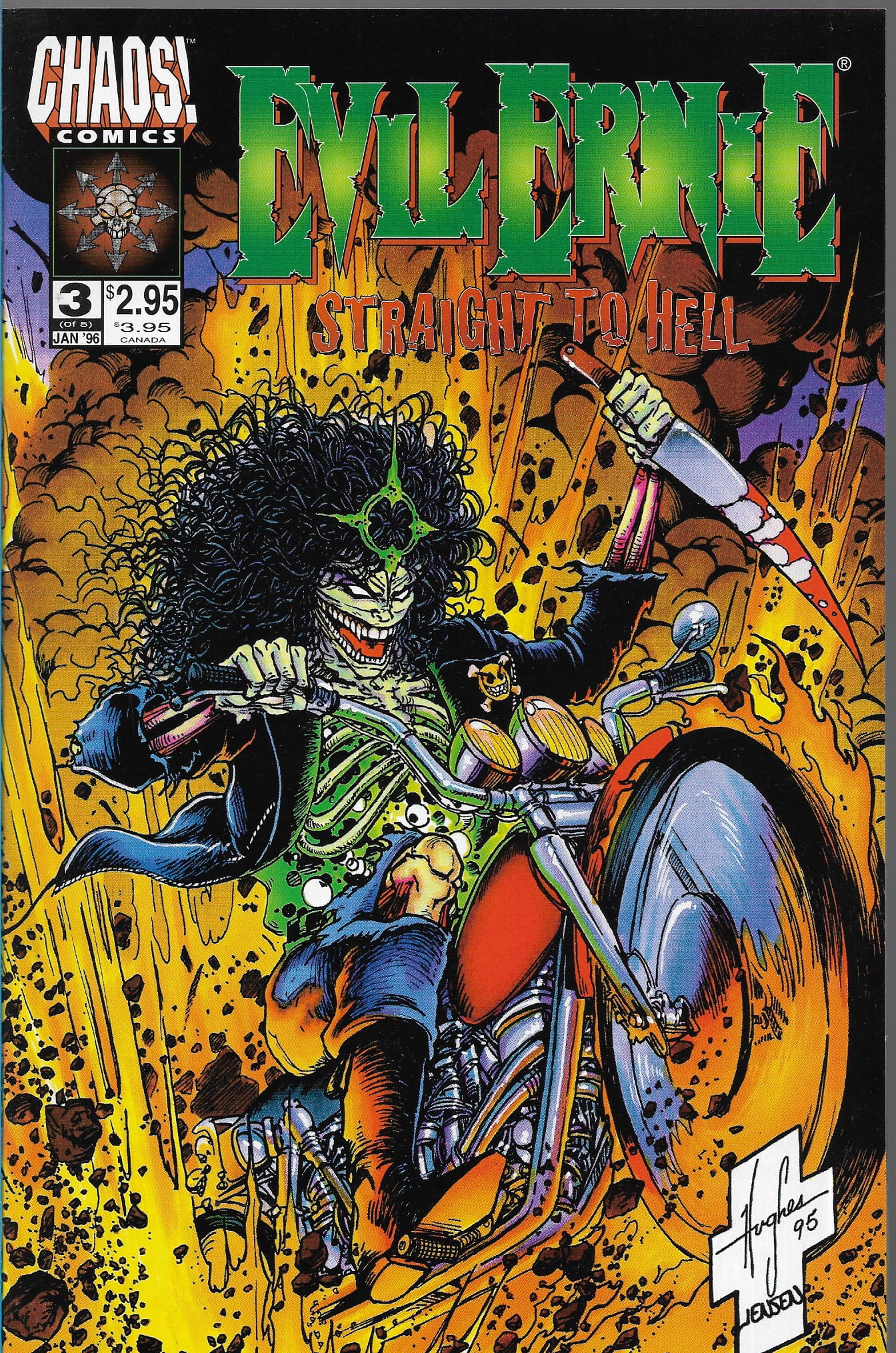 Wydawnictwo : Chaos ! Comics . Tytul : Evil Ernie : Straight to Hell 3/1996 . Komiks w języku angielskim . 32 strony . Stan Dobry : okładka lekko poprzecierana i poprzyginana.