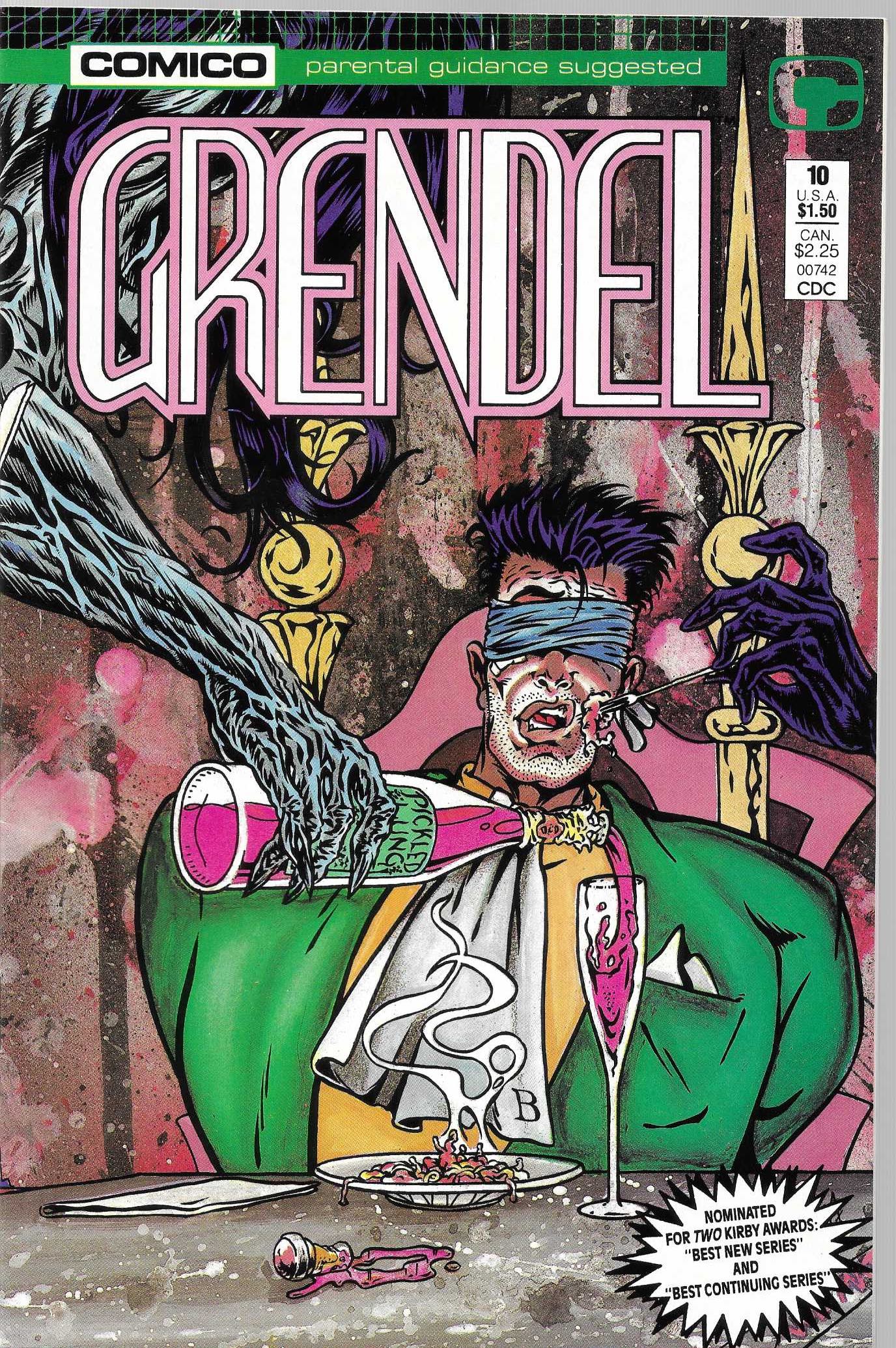 Wydawnictwo: Comico Comics . Tytuł: Grendel 10/1987 . Komiks w języku angielskim . Wydanie kolorowe . 32 strony . Stan Dobry : okładka lekko poprzecierana i poprzyginana.