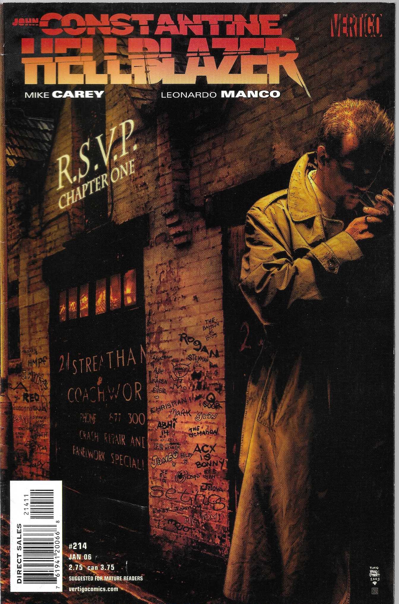 Wydawnictwo: Vertigo / DC Comics . Tytuł: Hellblazer 214/2006 . Komiks w języku angielskim . Wydanie kolorowe . 32 strony . Stan Dobry minus : okładka lekko poprzecierana i poprzyginana . Parę rogów minimalnie przygiętych . Minimalne przetarcia i załamania na grzbiecie komiksu .