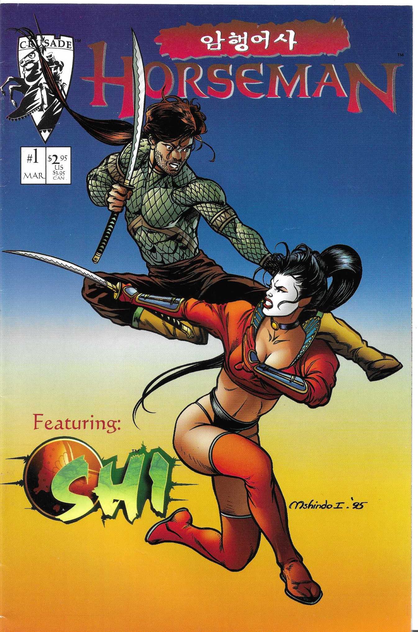 Opis Produktu : Horseman #1, published by Crusade Comics in March 1996, is a collectible comic book featuring the character Shi (Ana Ishikawa). The issue is notable for being part of the modern age of comic books (1992-present) and is often found in variant covers.
