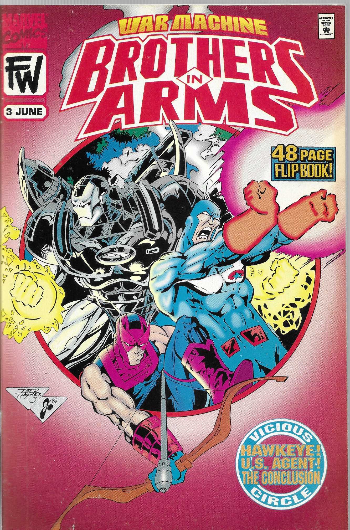Wydawnictwo : Marvel Comics . Tytul : Iron Man 317/1995 ( War Machine : Brothers in Arms 3 ) . Komiks w języku angielskim . Wydanie kolorowe .  48 stron . Stan Dobry : okładka lekko poprzecierana i poprzyginana . Komiks obustronny , z dwoch stron inny komiks tzw. flipbook !