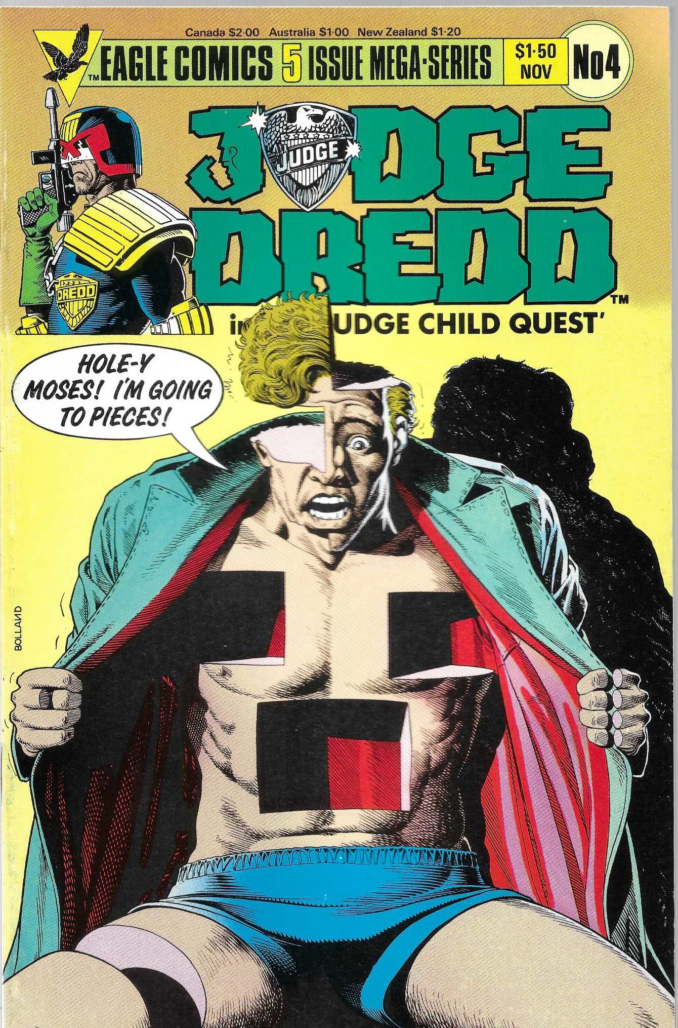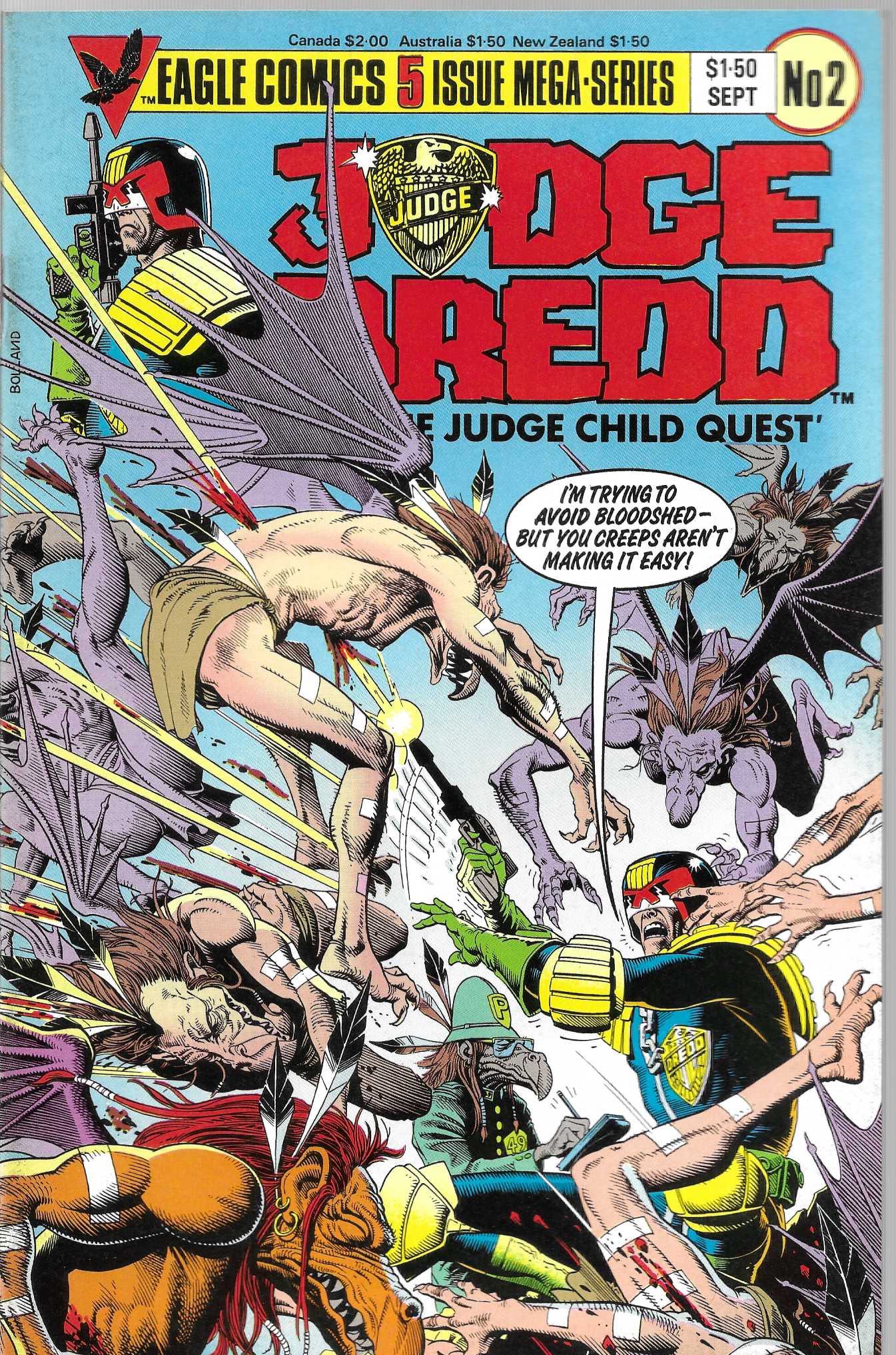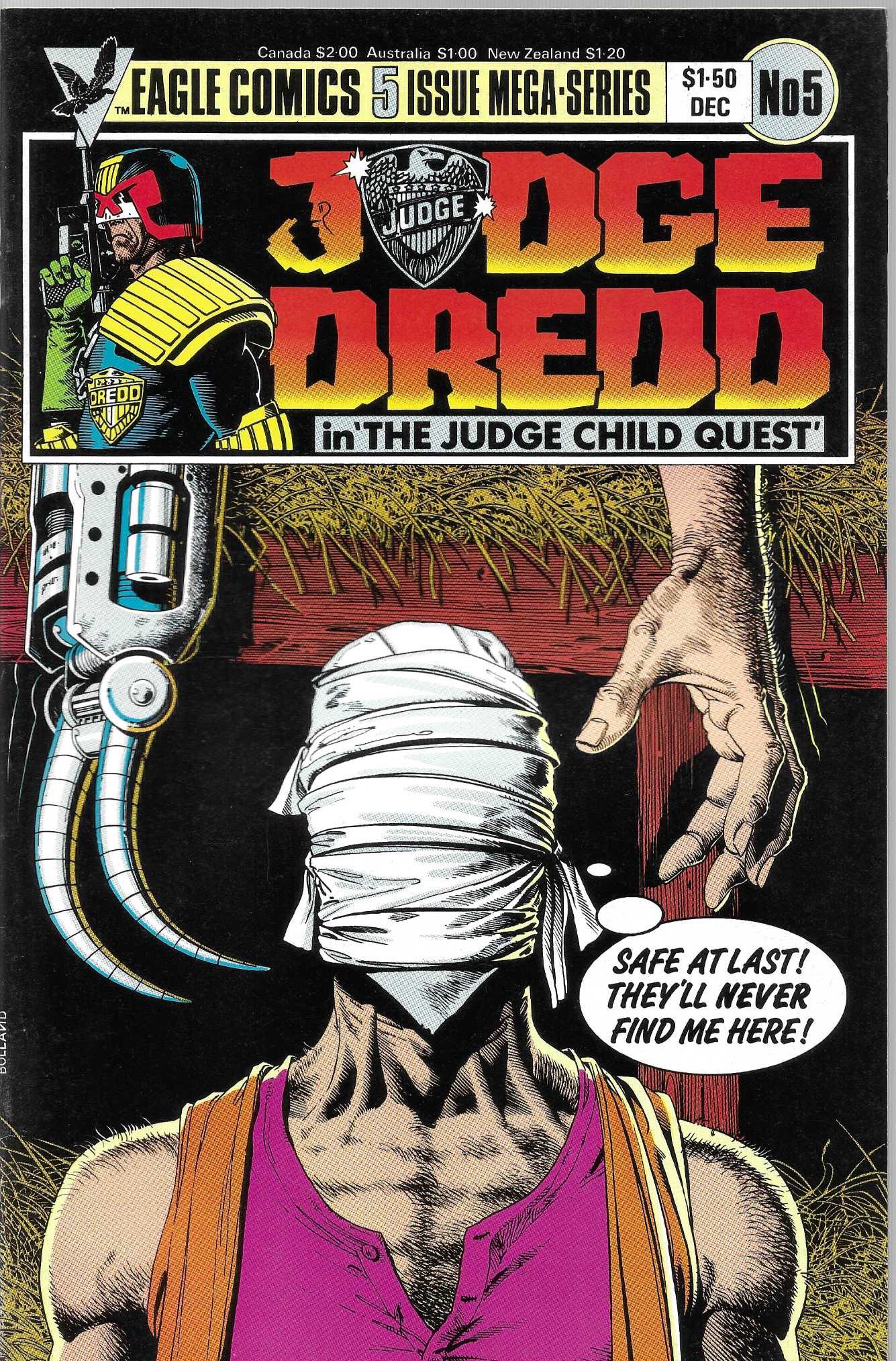 Wydawnictwo: Eagle Comics . Tytuł: Judge Dredd : in The Judge Child Quest 1-5/1984 . Komiks w języku angielskim . Wydanie kolorowe . Zeszyty po 32 strony . Stan Dobry : okładka lekko poprzecierana i poprzypinana. Minimalne zalamania na grzbiecie komiksu . 1-5 , Komplet !