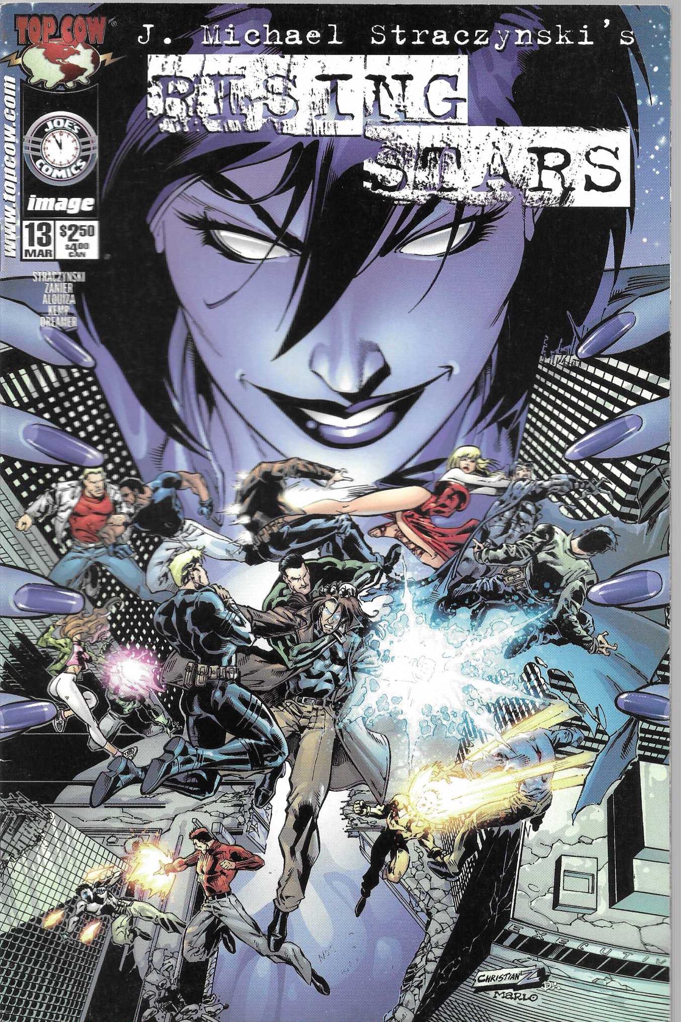 Wydawnictwo : Top Cow / Image Comics . Tytuł: Rising Stars 13/2001 . Komiks w języku angielskim . Wydanie kolorowe . 32 strony . Stan Dobry : okładka lekko poprzecierana i poprzyginana . Małe załamania na grzbiecie komiksu .