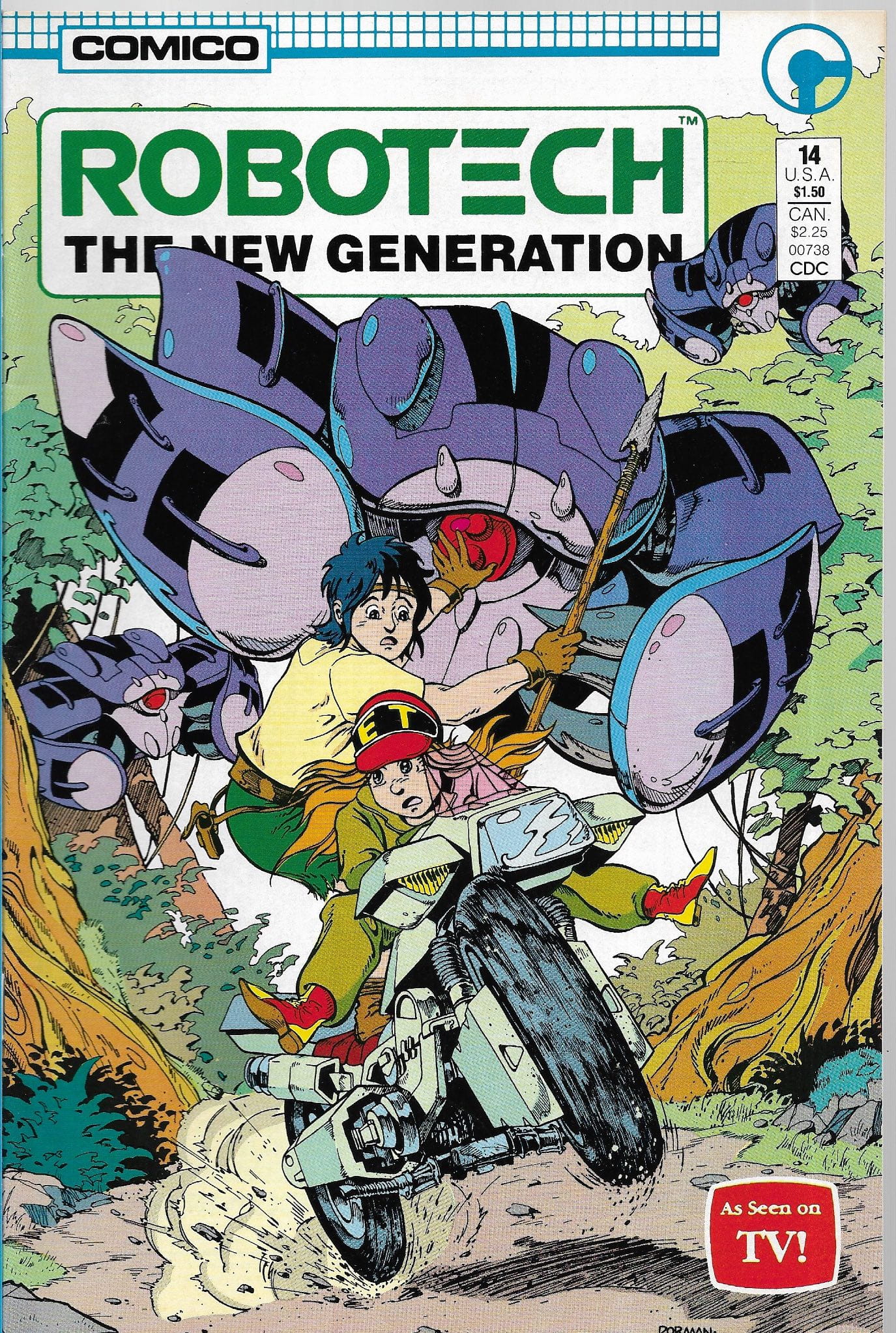 Wydawnictwo: Comico . Tytuł : Robotech : The New Generation 14/1987 . Komiks w języku angielskim. 32 strony. Stan Dobry : okladka lekko poprzecierana i minimalnie poprzyginana .