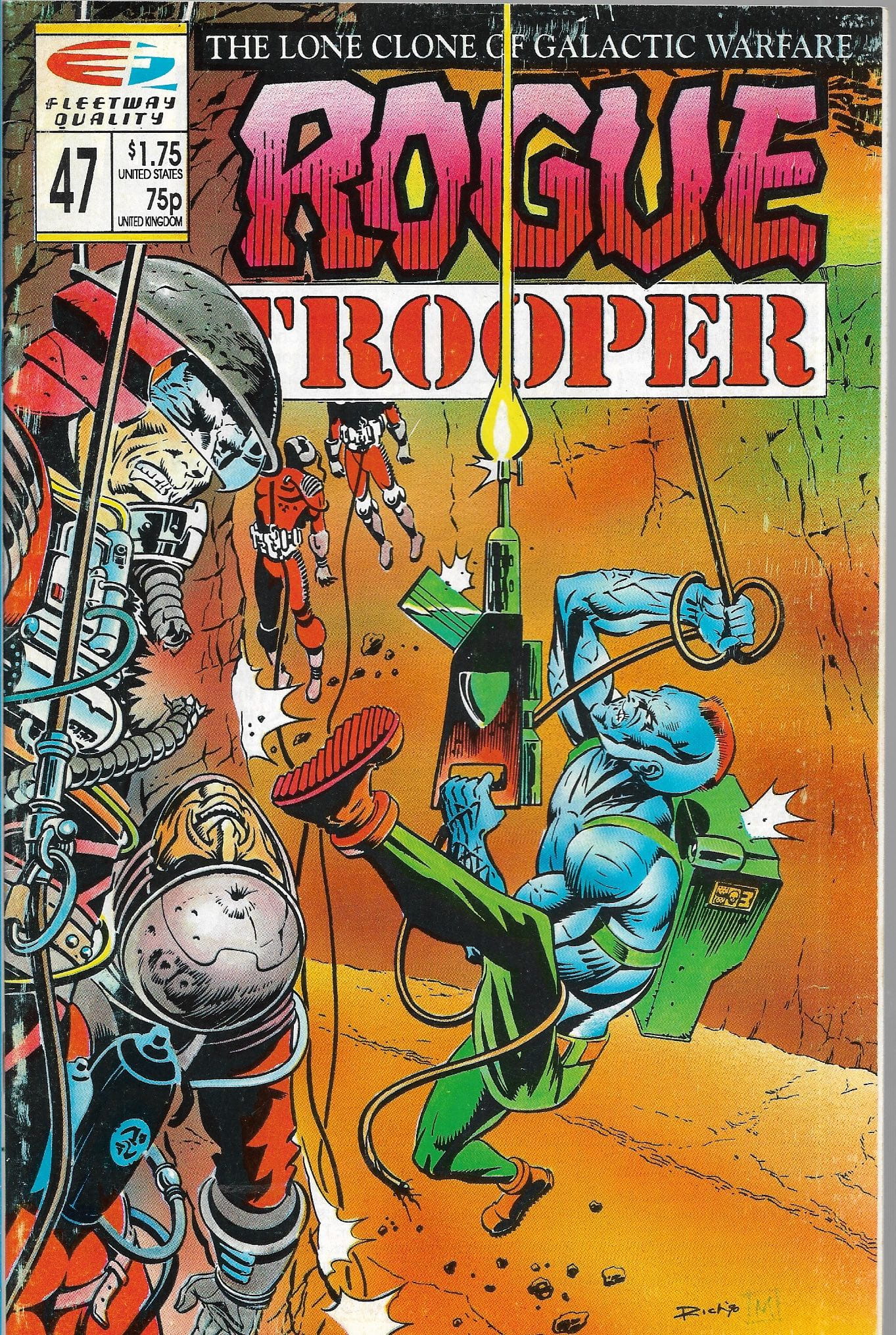 Wydawnictwo: Fleetway Quality . Tytuł : Rogue Trooper 47/1990 . Komiks w języku angielskim . 32 strony . Stan Dobry: okładka lekko poprzecierana i poprzypinana. Małe załamania wzdłuż grzbietu komiksu .
