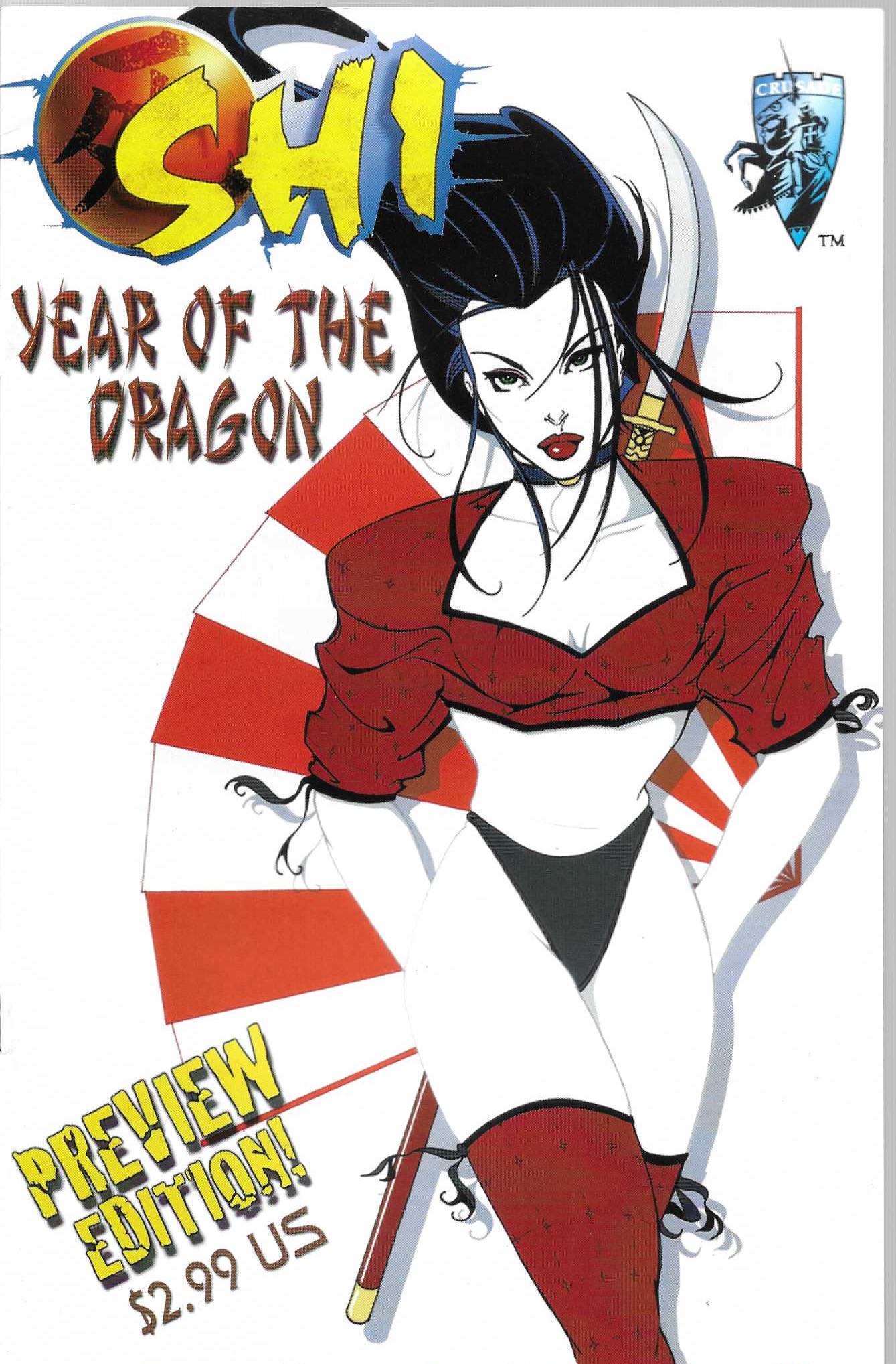 Wydawnictwo : Crusade Comics . Tytul : SHI : Year of the Dragon Preview Edition 2000 . Komiks w języku angielskim . Wydanie czarno-białe . 24 strony . Stan Dobry : okładka lekko poprzecierana i poprzyginana . UWAGA : to nie jest komiks , to jest wydanie preview .