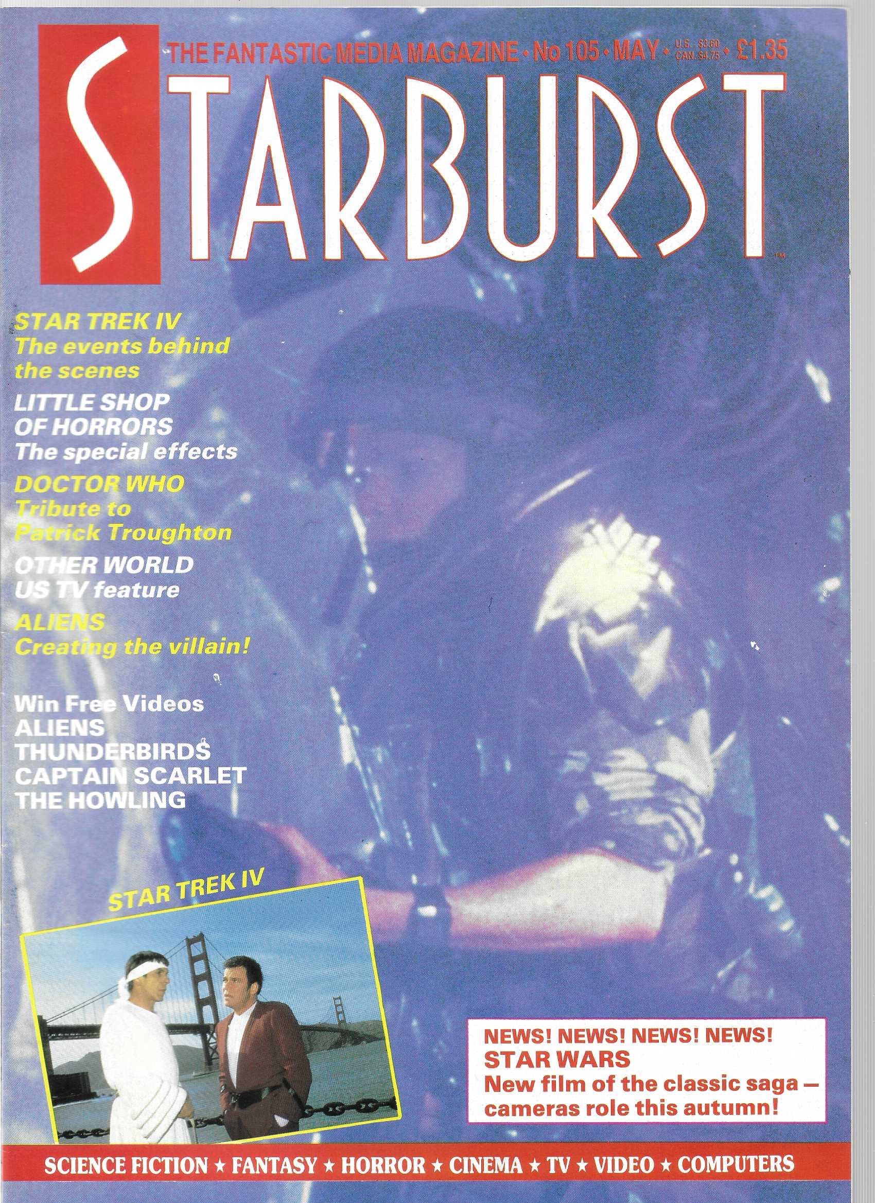 Opis Produktu : Starburst is the British "fantastic media magazine." Issue #105 includes: Star Trek IV: The Voyage Home - events behind the scenes; special effects of Little Shop of Horrors; Other World - US tv feature; Aliens - creating the villain. Aliens/Star Trek IV: The Voyage Home cover.