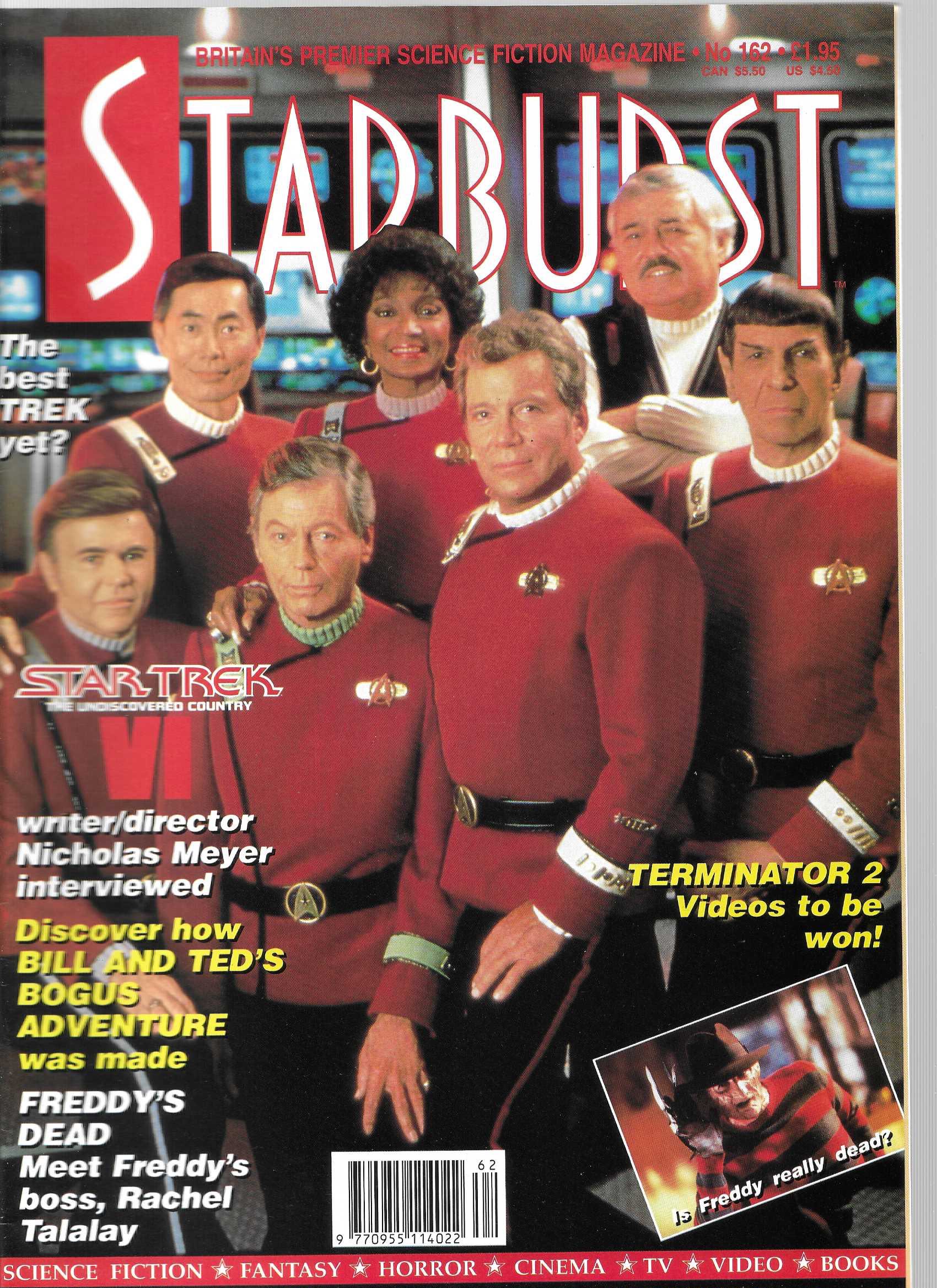 Opis Produktu : Starburst is "Britain's premier science fiction magazine." Issue #162 includes: Star Trek VI: The Undiscovered Country - interview with writer/director Nicholas Meyer; discover how Bill and Ted's Bogus Adventure was made; Freddy's Dead: The Final Nightmare - meet Freddy's director, Rachel Talalay. Star Trek VI cover.