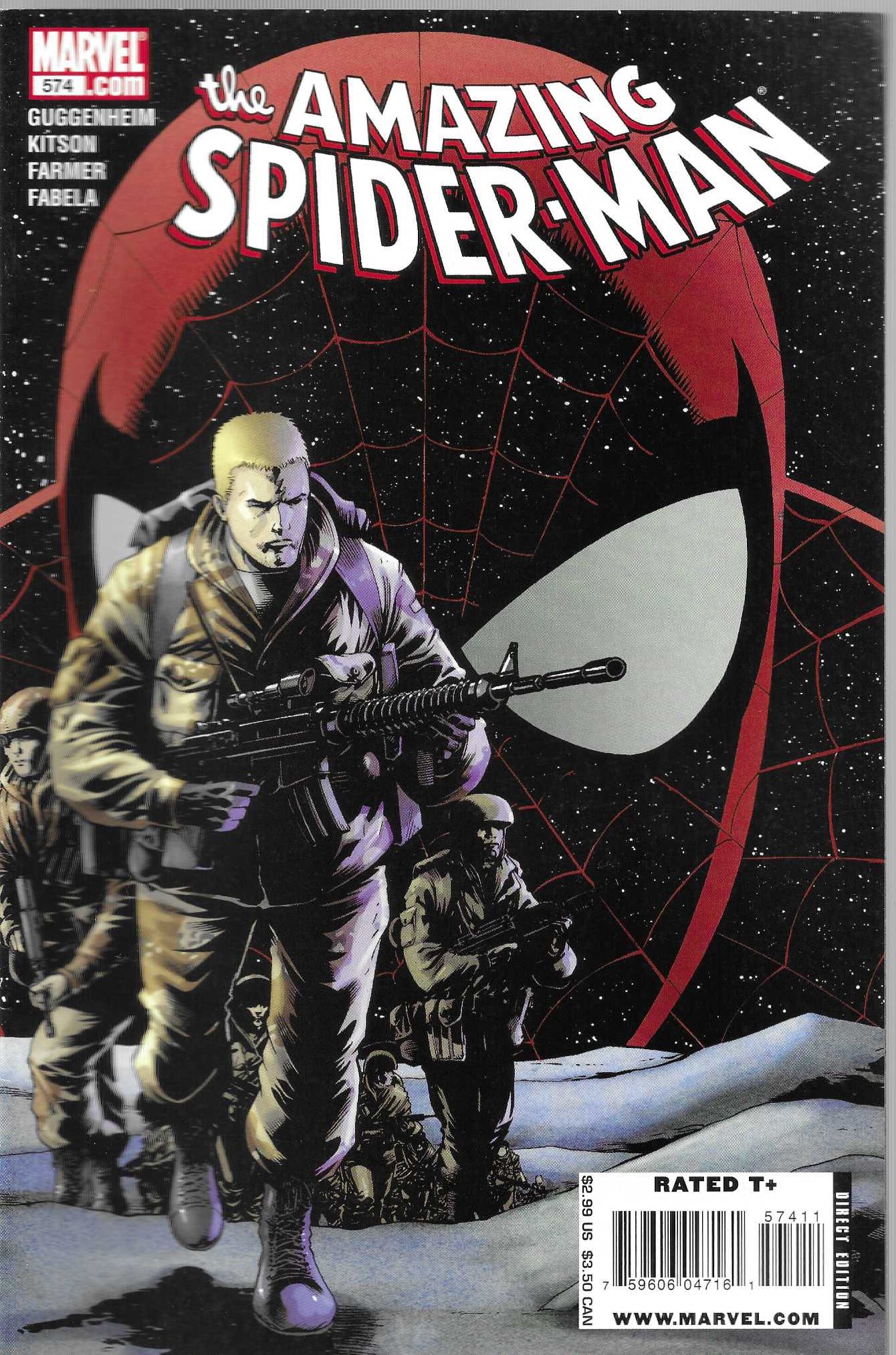 Wydawnictwo : Marvel Comics . Tytul : The Amazing Spider-man 574/2008 . Komiks w języku angielskim . Wydanie kolorowe . 32 strony . Stan Dobry : okładka lekko poprzecierana i poprzyginana . Minimalne przetarcia i zalamania na grzbiecie komiksu .