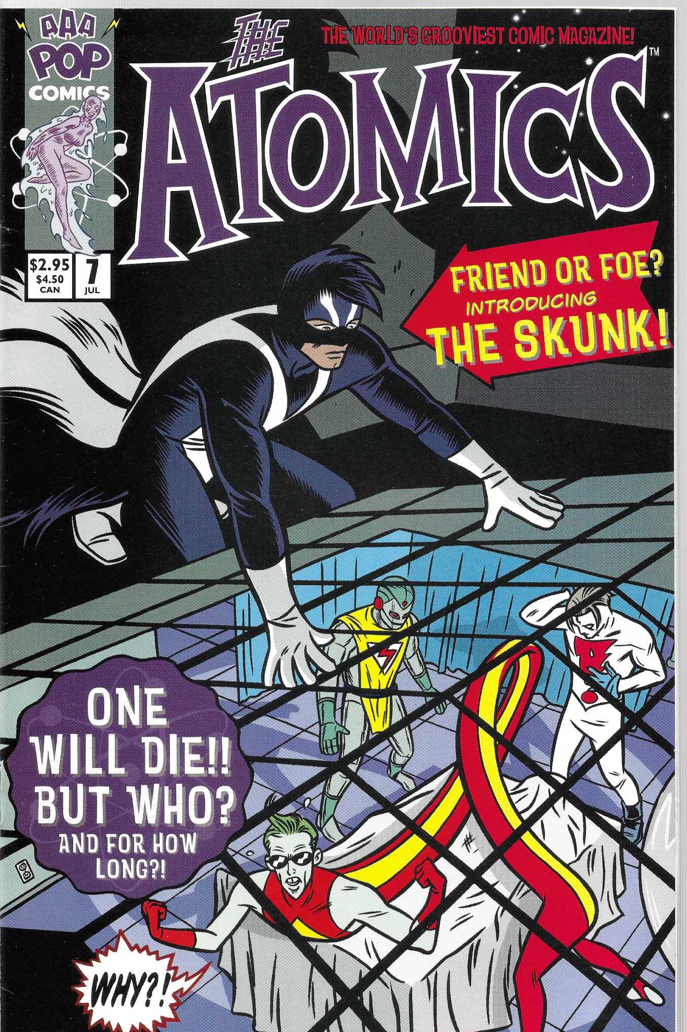 Opis Produktu : By Mike Allred. One of the Atomics will die! But who is it that bites the big one and just how long will they stay dead exactly? The gang of former street beatniks become increasingly famous as heroes in Snap City when they stumble across a bizarre bank robbery and end up saving the day. Unfortunately, the cost is high, and tragedy strikes. Who will take the fallen hero's place? You'll also find out all the buzz in this very issue as well as witnessing the startling debut of Snap City's smelliest new character: the insidious Skunk! It's comic book history in the making so don't miss The Atomics #7! Included with this issue is a special cut-and-assemble paper activity.