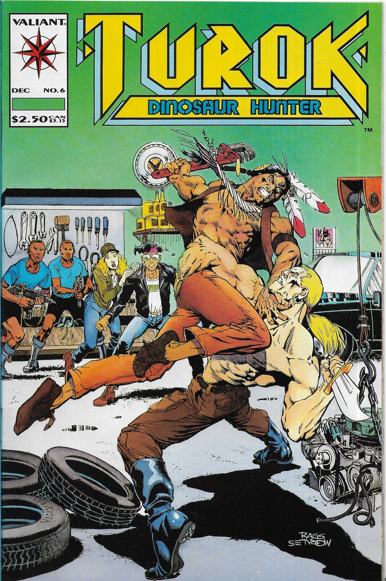 Wydawnictwo : Valiant Comics . Tytul : Turok : Dinosaur Hunter 6/1993 . Komiks w języku angielskim . 32 strony . Stan dobry : okładka lekko poprzecierana i poprzyginana .