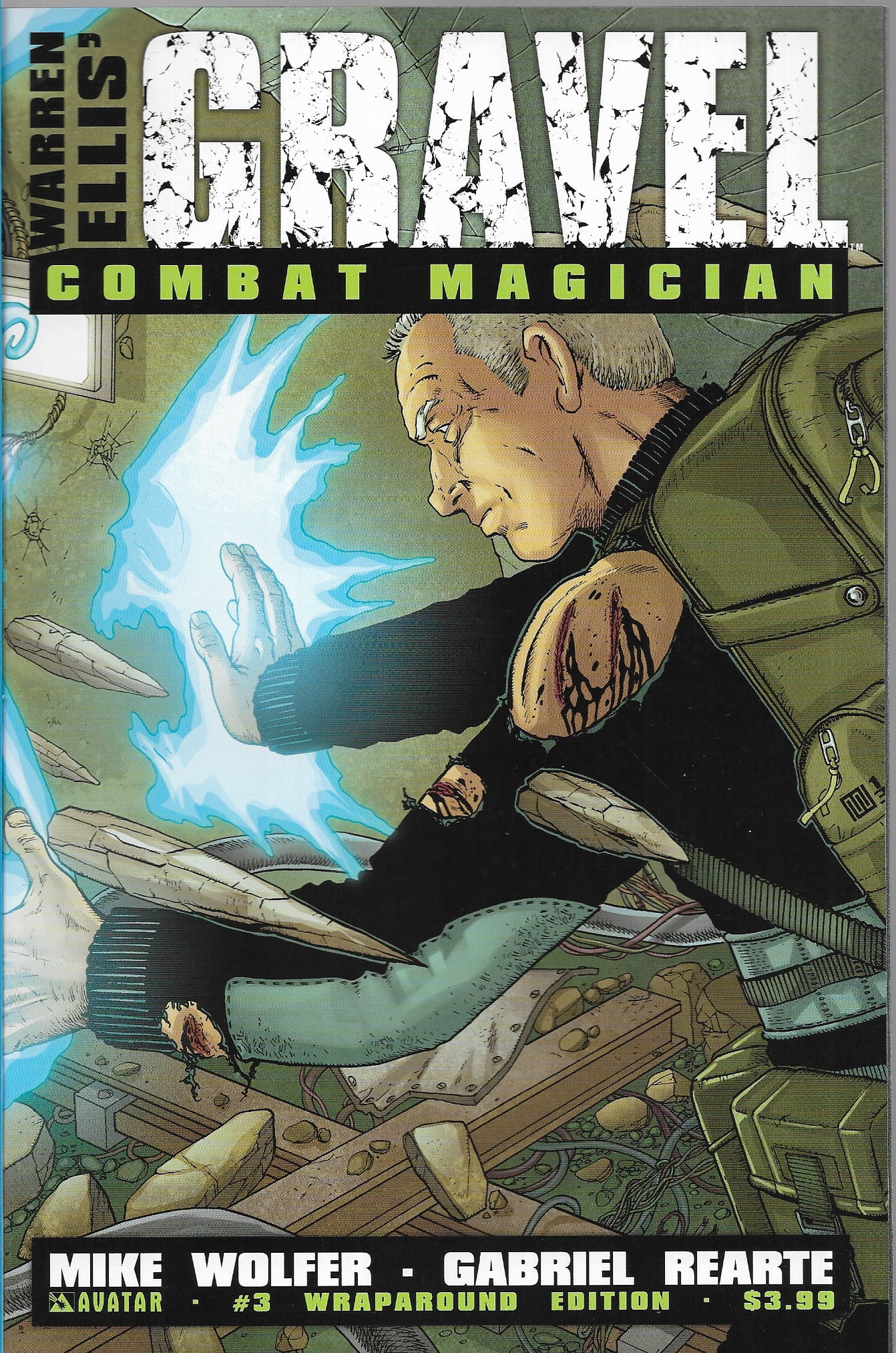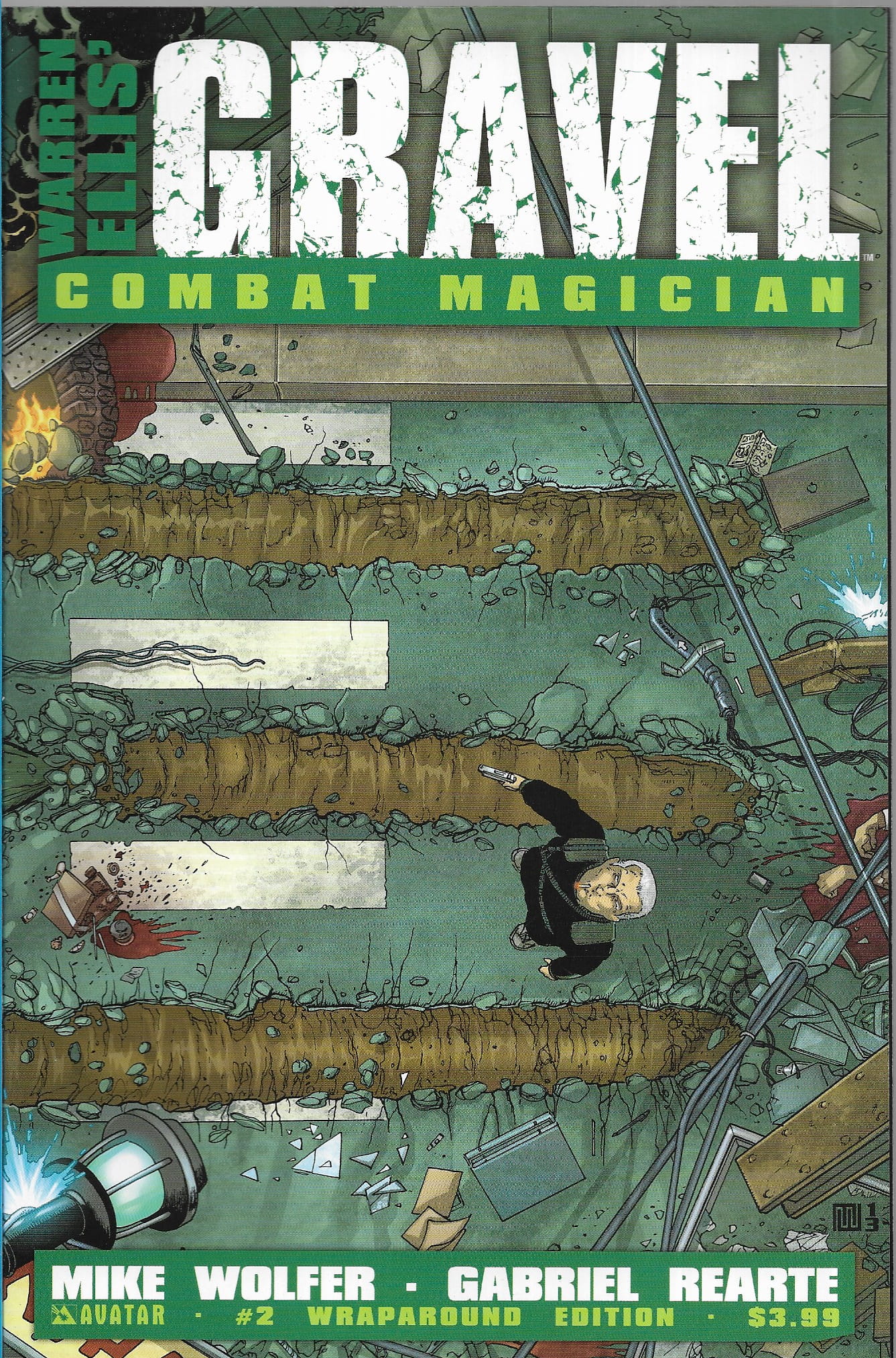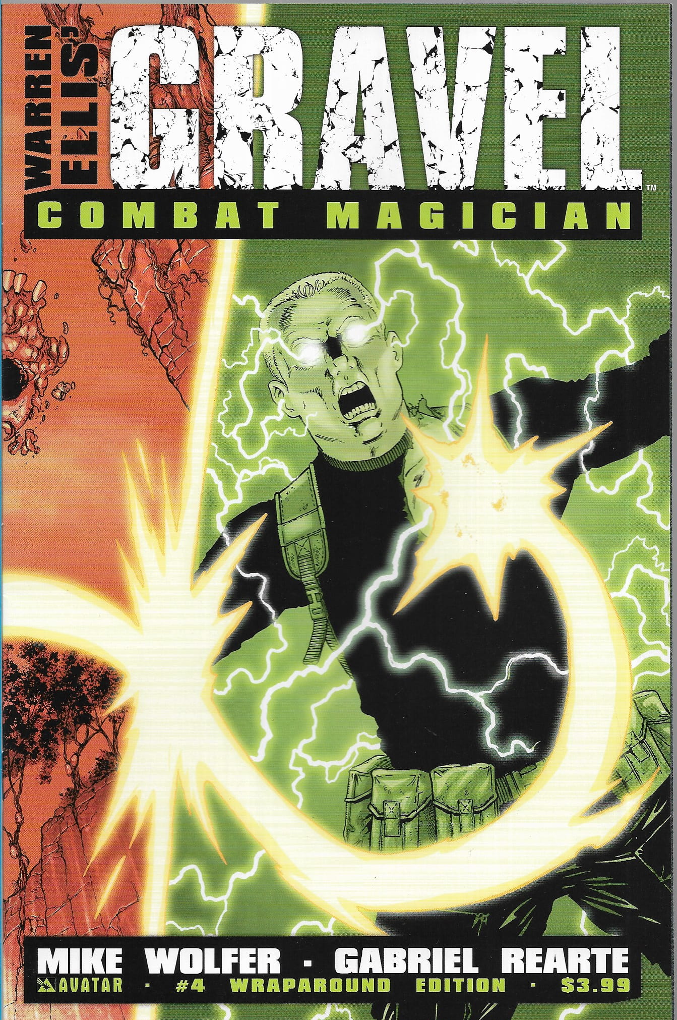 Wydawnictwo: Avatar Comics . Tytuł: Warren Ellis' Gravel: Combat Magician 0-4/2014. Komiks w języku angielskim. Zeszyty po 32 strony . Stan Dobry : okładka lekko poprzecierana i poprzypinana. 0-4 , Komplet .