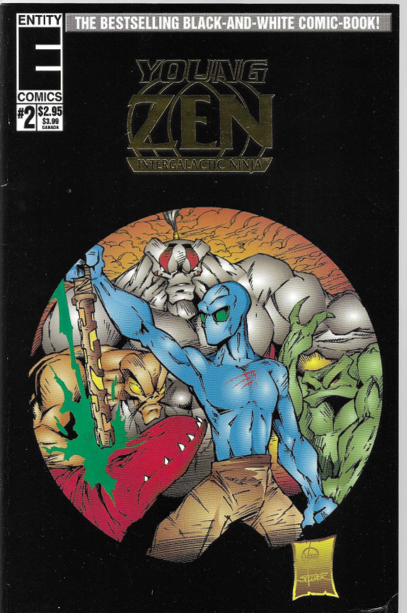 Wydawnictwo : Entity Comics . Tytul : Young Zen Intergalactic Ninja 2/1993 . Komiks w języku angielskim . Wydanie czarno-biale . 28 stron . Stan Dobry : okładka lekko poprzecierana i poprzyginana . Male zalamania na grzbiecie komiksu . Pare rogow lekko przygietych .